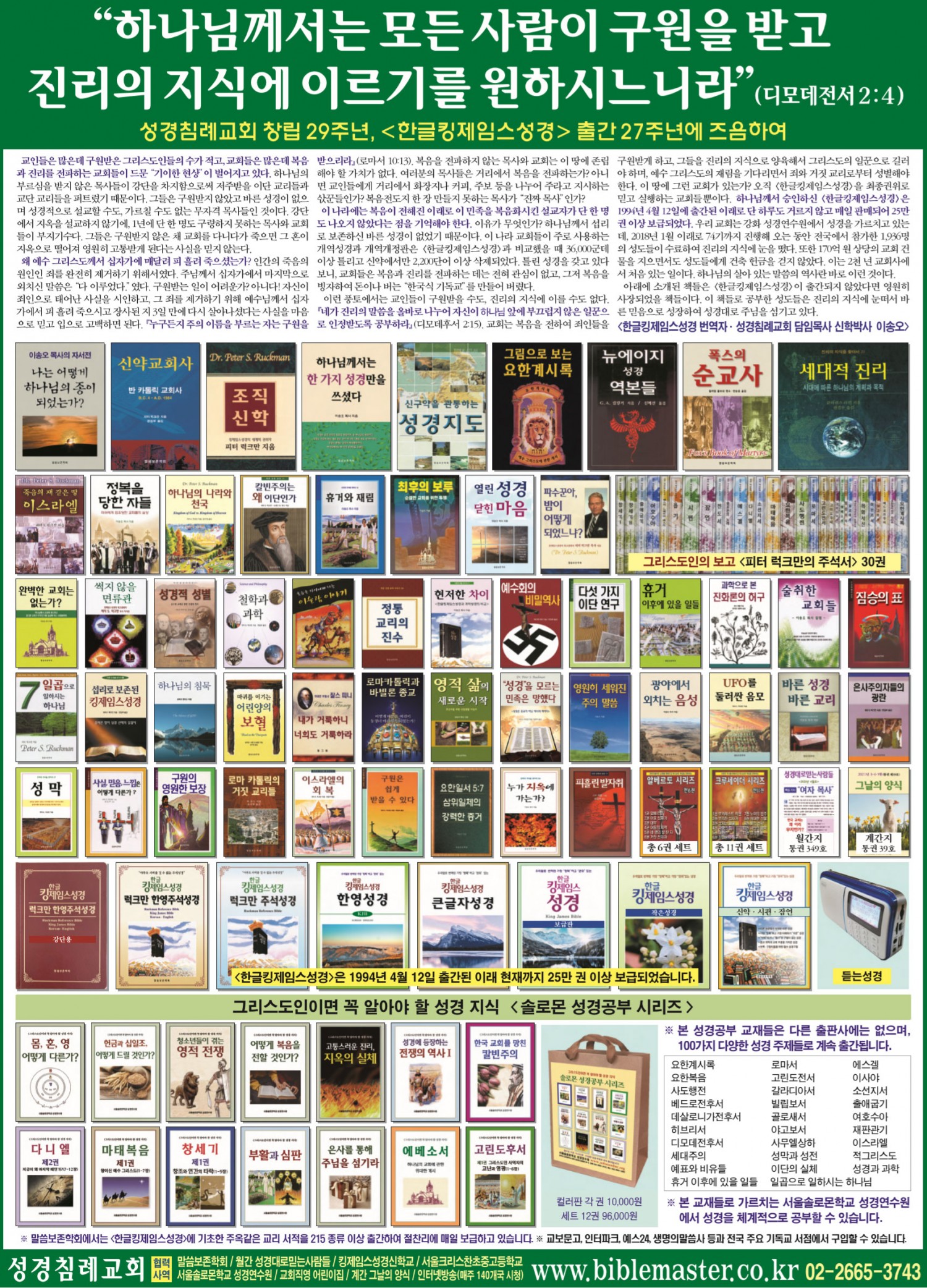 성경침례교회 창립 29주년, 한글킹제임스성경 출간 27주년 전면광고(2021년 4월 12일자 동아일보) 작성자 정보 최고관리자 작성 작성일 2025.10.10 11:17 컨텐츠 정보 340 조회 목록 본문 . SNS 공유 관련자료 이전 성경침례교회 창립 30주년, 한글킹제임스성경 출간 28주년 전면광고(2022년 4월 12일자 조선일보, 4월 13일자 중앙일보) 작성일 2025.10.10 11:18 다음 한글킹제임스성경 출간 26주년 전면광고(2020년 4월 10일자 동아일보) 작성일 2025.10.10 11:17 댓글 0 등록된 댓글이 없습니다. 로그인한 회원만 댓글 등록이 가능합니다. 목록